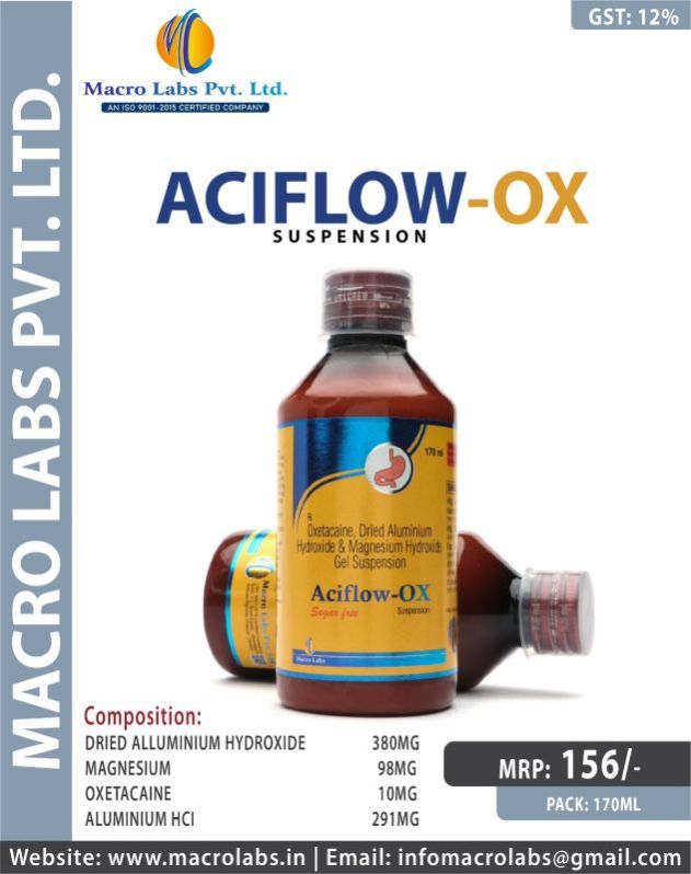 ACIFLOW OX is used in the treatment of acidity, heartburn and stomach ulcers. Oxetacaine is a local anesthetic that provides relief from pain due to ulcers or acidic injury in the stomach.